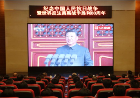 9月3日上午,纪念中国人民抗日战争暨世界反法西斯战争胜利80周年大会在北京天安门广场隆重举行,学院组织广大师生通过电视、网络、广播等渠道集中收看。党委书记彭钧华带领班子成员同部分师生代表在学院龙洞校区行政楼一楼报告厅集中观看大会直播。