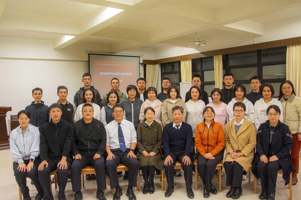为深入铸牢中华民族共同体意识,搭建各民族师生交流交融的坚实桥梁,2025年11月19日下午,思想理论课教学部(以下简称“思政部”)与法律系共同举办“铸牢中华民族共同体意识”系列活动。在法律系和思政部的共同组织下,12名思政课教师与14名维吾尔族、哈萨克族等少数民族学生一起“找对子、结对子”,相约共同学习进步。窗外寒气逼人,师生们心中却涌动着暖流。