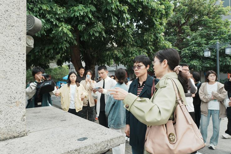 图为教师带领学生在广州市南沙区黄阁莲溪大街实地研学
