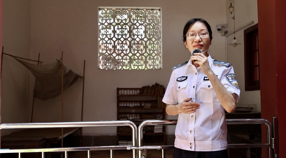 谢锋在毛泽东视察棠下纪念馆现场讲解